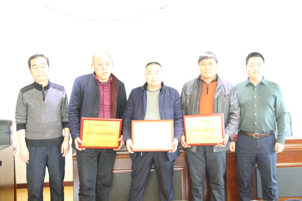 2017年是集團公司穩(wěn)中求進、謀求發(fā)展的一年,公司今天的成績離不開各個項目部的大力支持,經(jīng)公司研究評定8個優(yōu)秀項目部、3個優(yōu)秀勞務(wù)公司、34個項目先進個人,并給予表彰。