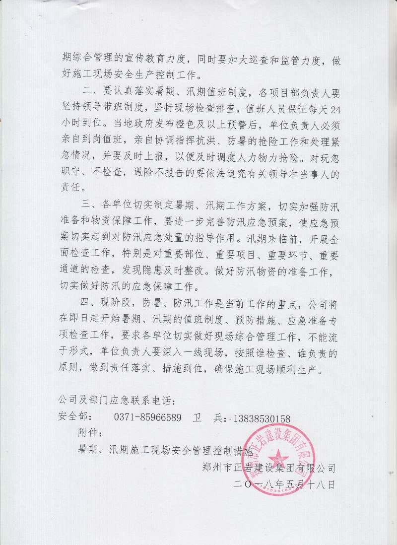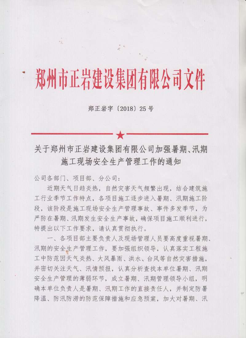 鄭正巖字〔2018〕25號(hào) 加強(qiáng)暑期汛期施工現(xiàn)場(chǎng)安全生產(chǎn)管理工作的通知