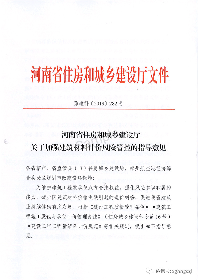 河南省住房和城鄉(xiāng)建設(shè)廳關(guān)于加強建筑材料計價風(fēng)險管控的指導(dǎo)意見