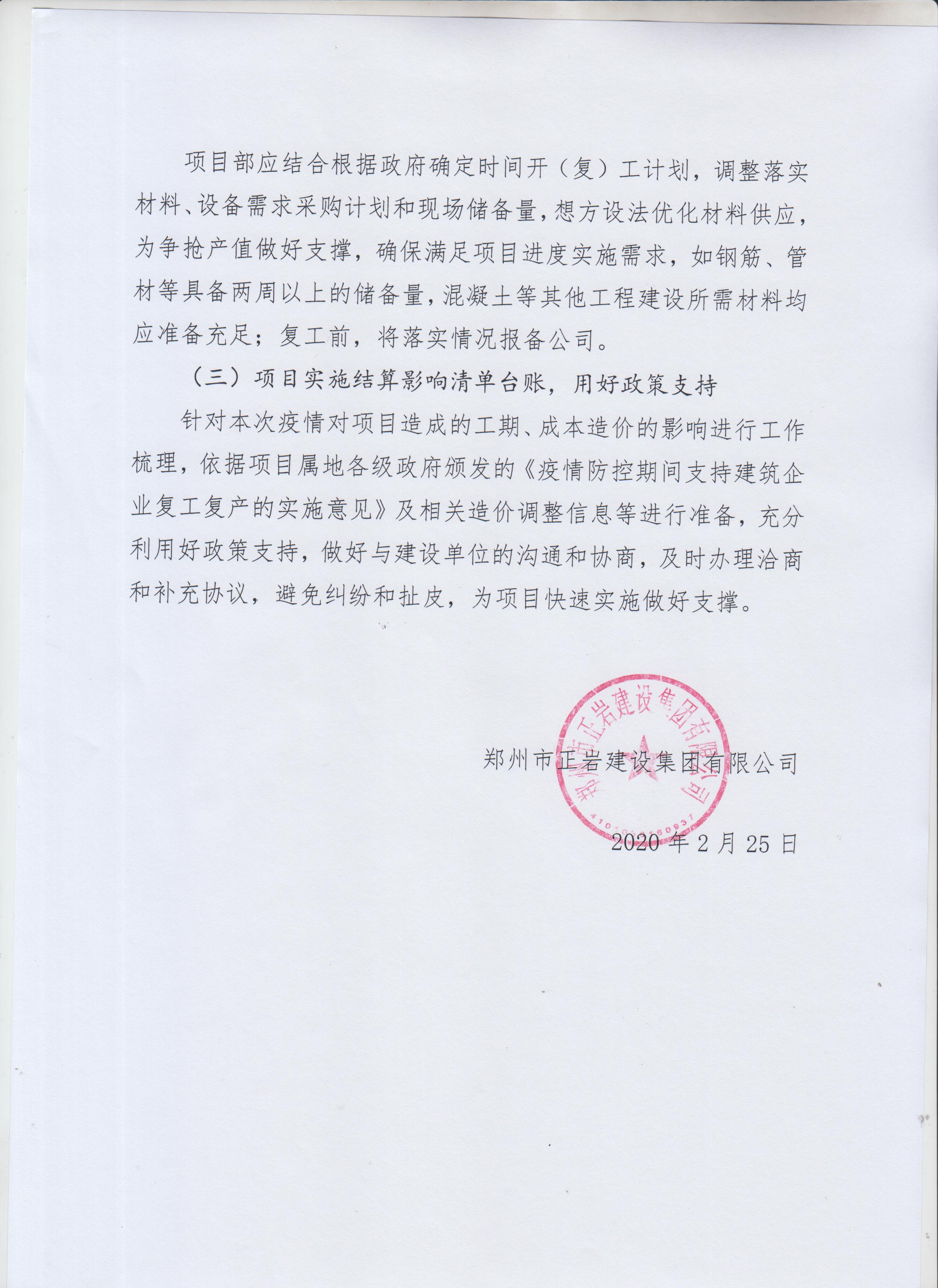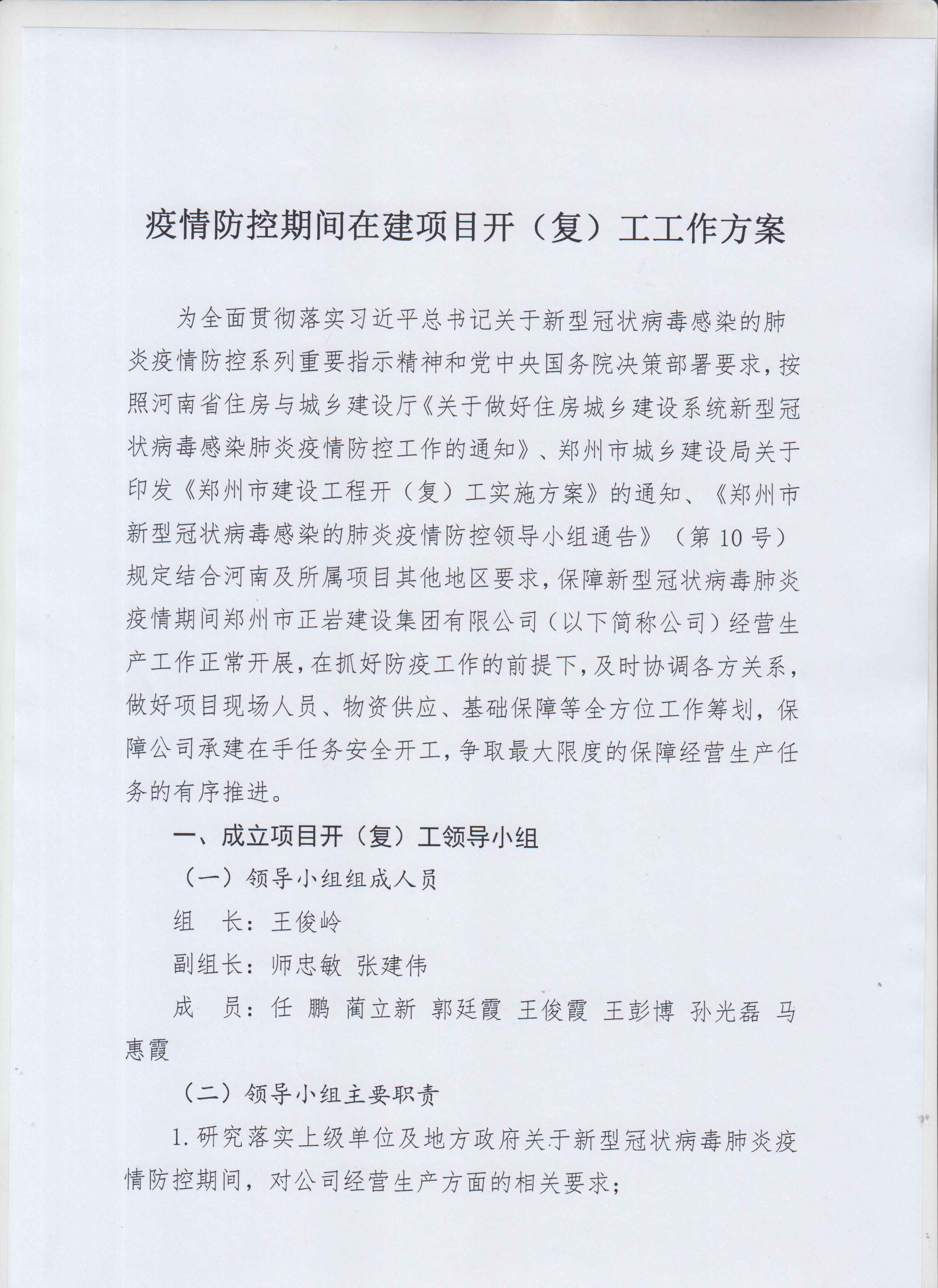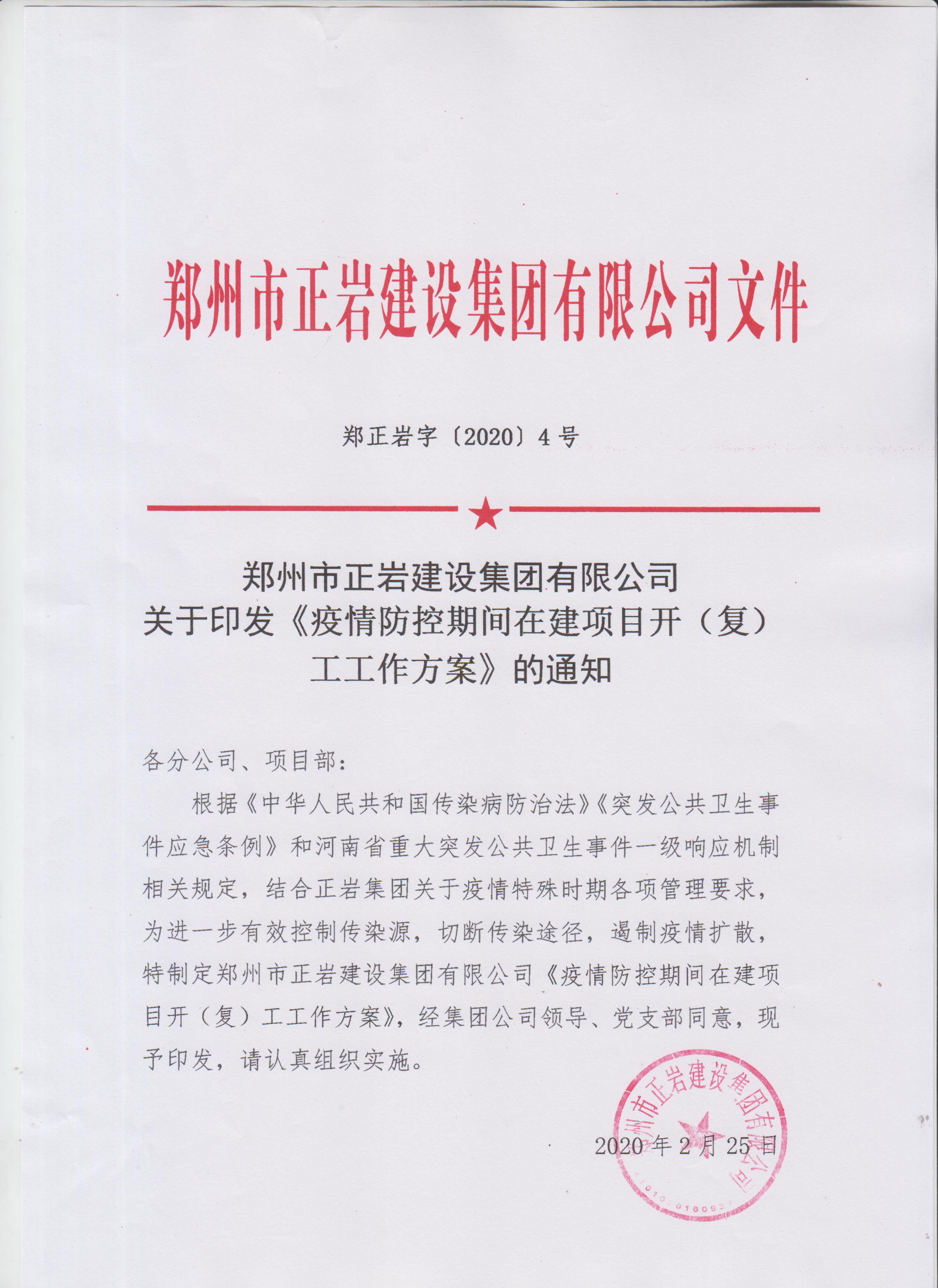 鄭州市正巖建設(shè)集團(tuán)有限公司關(guān)于印發(fā)《疫情防控期間在建項(xiàng)目開(復(fù))工工作方案》的通知