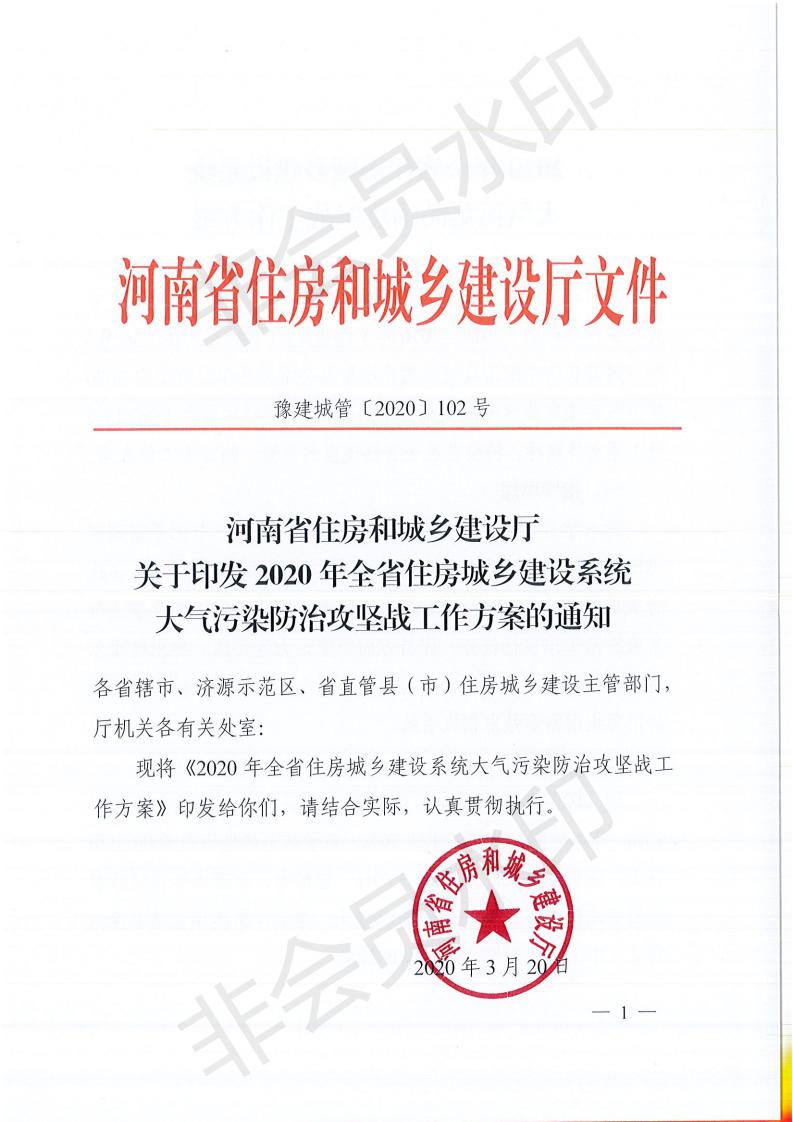 河南省住房和城鄉(xiāng)建設(shè)廳關(guān)于印發(fā)2020年全省住房城鄉(xiāng)建設(shè)系統(tǒng)大氣污染防治攻堅戰(zhàn)工作方案的