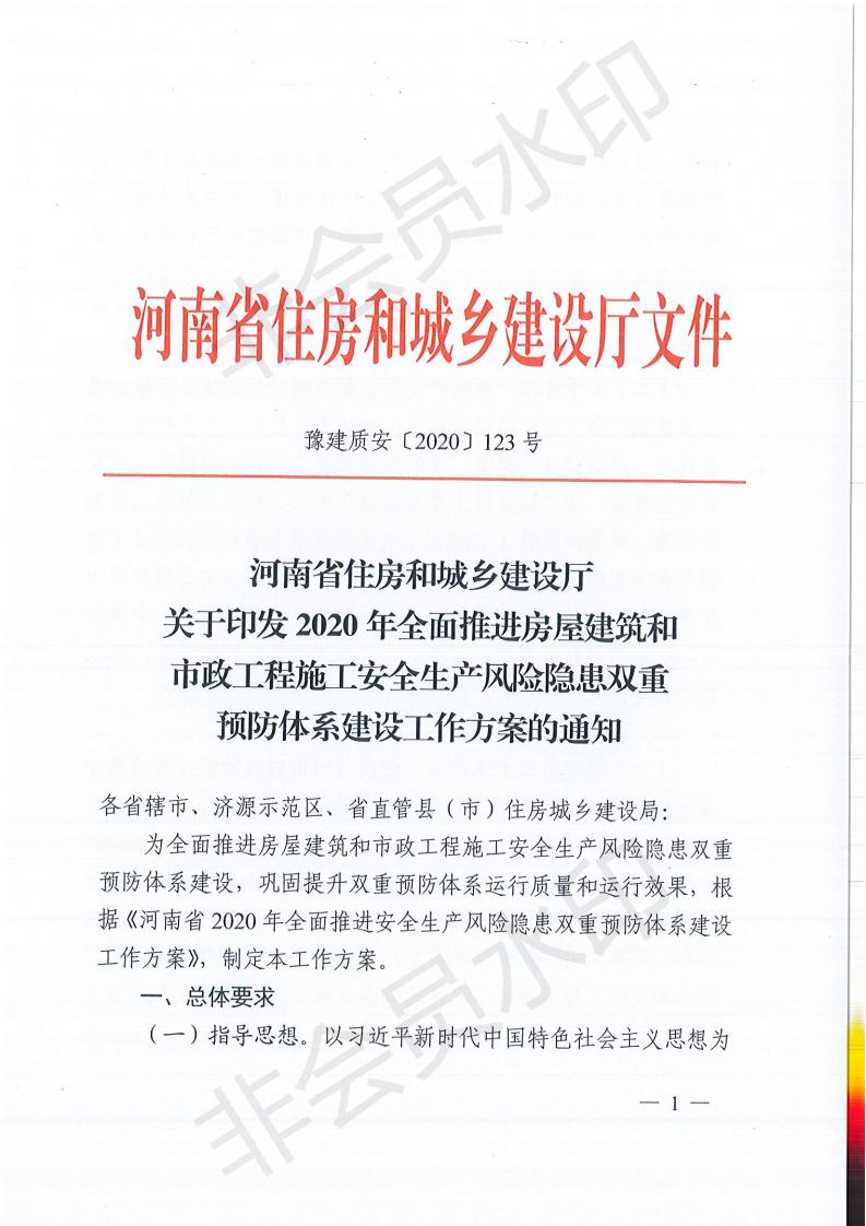 河南省住房和城鄉(xiāng)建設(shè)廳關(guān)于印發(fā)2020年全面推進(jìn)房屋建筑和市政工程施工安全生產(chǎn)風(fēng)險(xiǎn)隱患雙