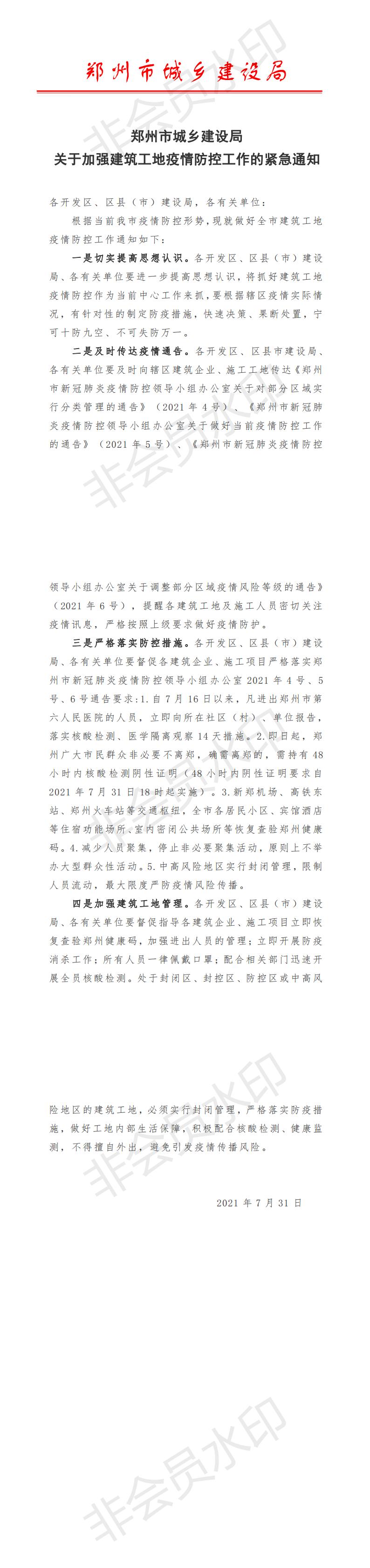 鄭州市城鄉(xiāng)建設局關于加強建筑工地疫情防控工作的緊急通知
