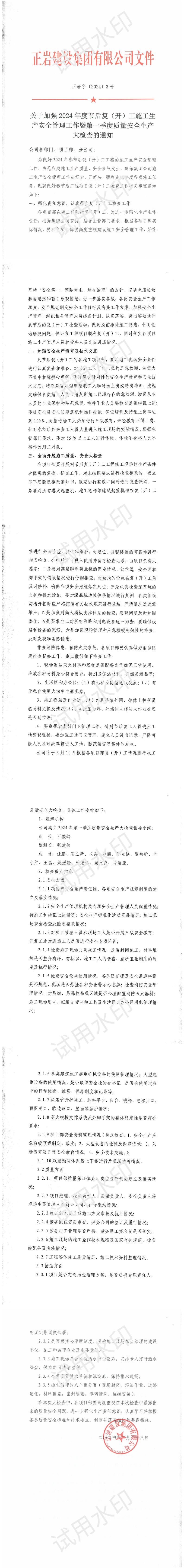 關(guān)于加強(qiáng)2024年度節(jié)后復(fù)(開)工施工安全管理工作暨第一季度質(zhì)量安全生產(chǎn)大檢查的通知