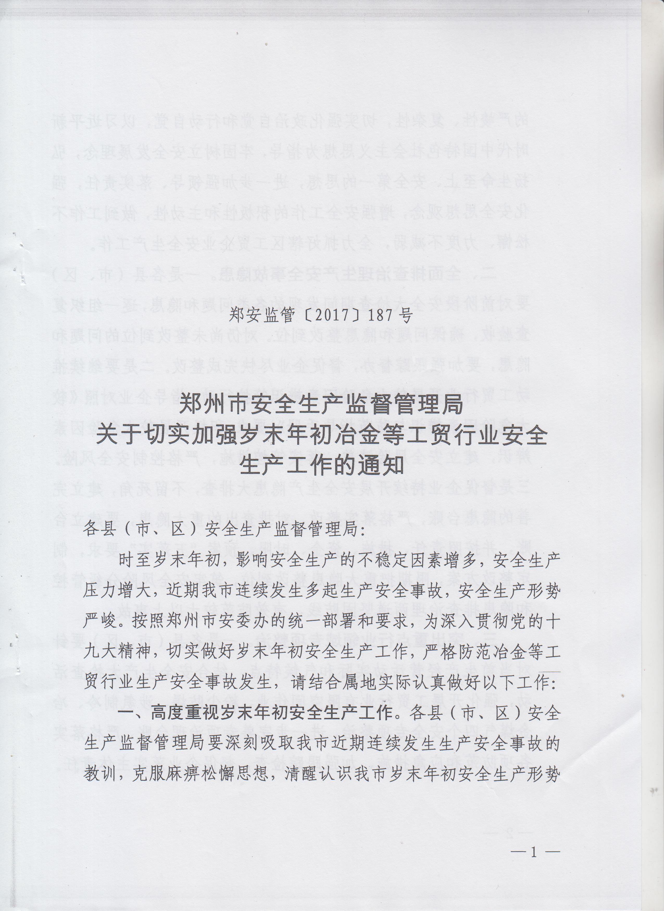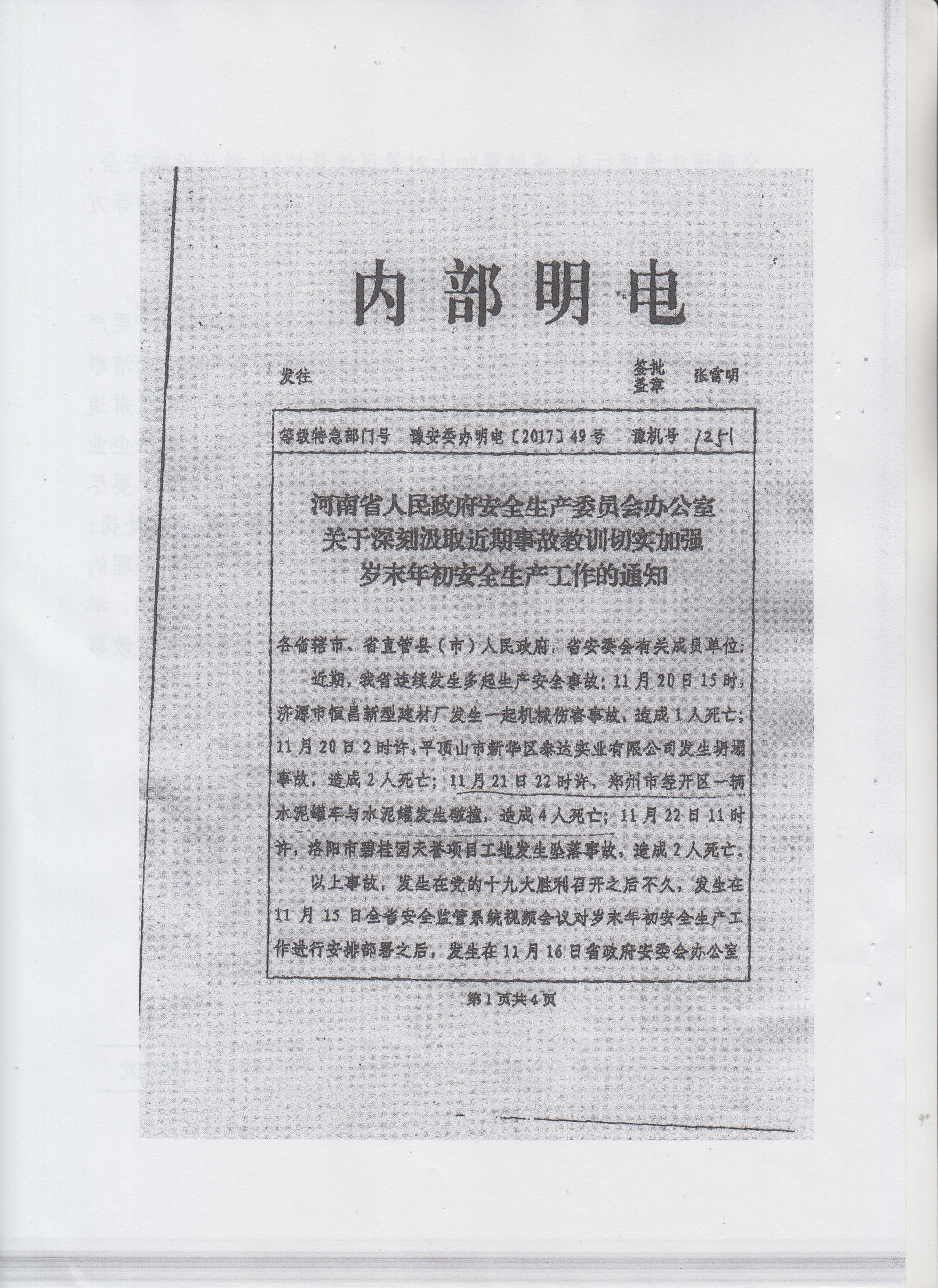 關(guān)于轉(zhuǎn)發(fā)豫安委辦明電【2017】49號(hào)文件、鄭安監(jiān)管【2017】187號(hào)文件、鄭安委辦【2017】98號(hào)文件
