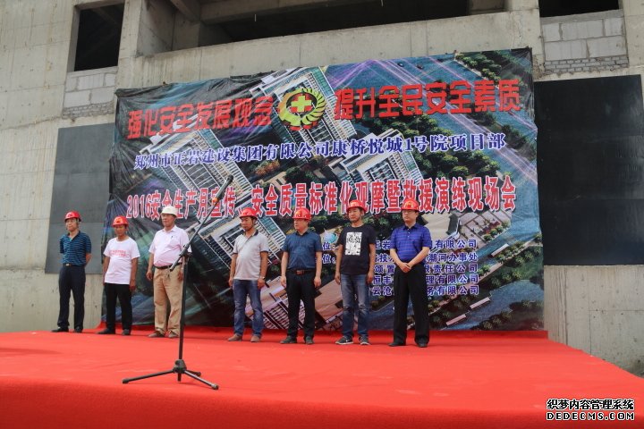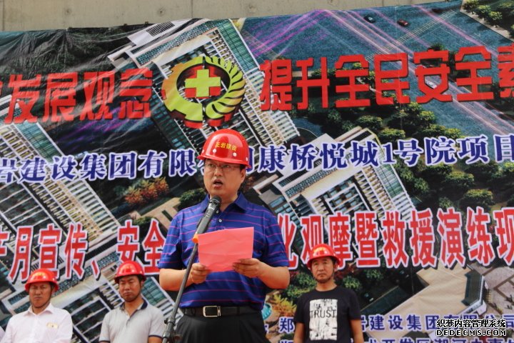 通過觀摩學(xué)習(xí),認(rèn)真總結(jié),充分準(zhǔn)備,6月30日在公司康橋悅城1號院項(xiàng)目部,舉行“2016安全生產(chǎn)月宣傳、安全質(zhì)量標(biāo)準(zhǔn)化觀摩暨救援演練現(xiàn)場會”。本次活動集團(tuán)公司領(lǐng)導(dǎo)高度重視,特別成立以董事長王俊嶺為總指揮的安全事故應(yīng)急救援演練領(lǐng)導(dǎo)小組,由公司總工藺立新組織安全部、工程部及項(xiàng)目部相關(guān)人員,積極協(xié)調(diào)安全演練及觀摩事宜。此次活動也得到了上級主管部門的大力支持,鄭州市經(jīng)濟(jì)技術(shù)開發(fā)區(qū)安監(jiān)局王紅亮主任、鄭州市經(jīng)濟(jì)技術(shù)開發(fā)區(qū)潮河辦事處李主任、河南博頌置業(yè)有限責(zé)任公司經(jīng)理、河南新恒豐建設(shè)監(jiān)理有限公司王朝生總監(jiān)及河南省云滄建筑勞務(wù)有限公司齊客松經(jīng)理一行,先后蒞臨施工現(xiàn)場指導(dǎo),并參加集團(tuán)公司舉行的安全質(zhì)量標(biāo)準(zhǔn)化觀摩及救援演練現(xiàn)場會活動。